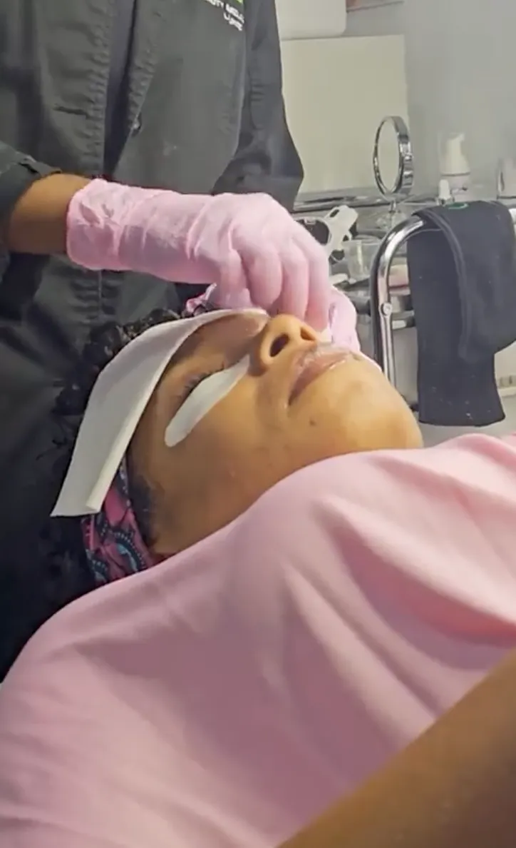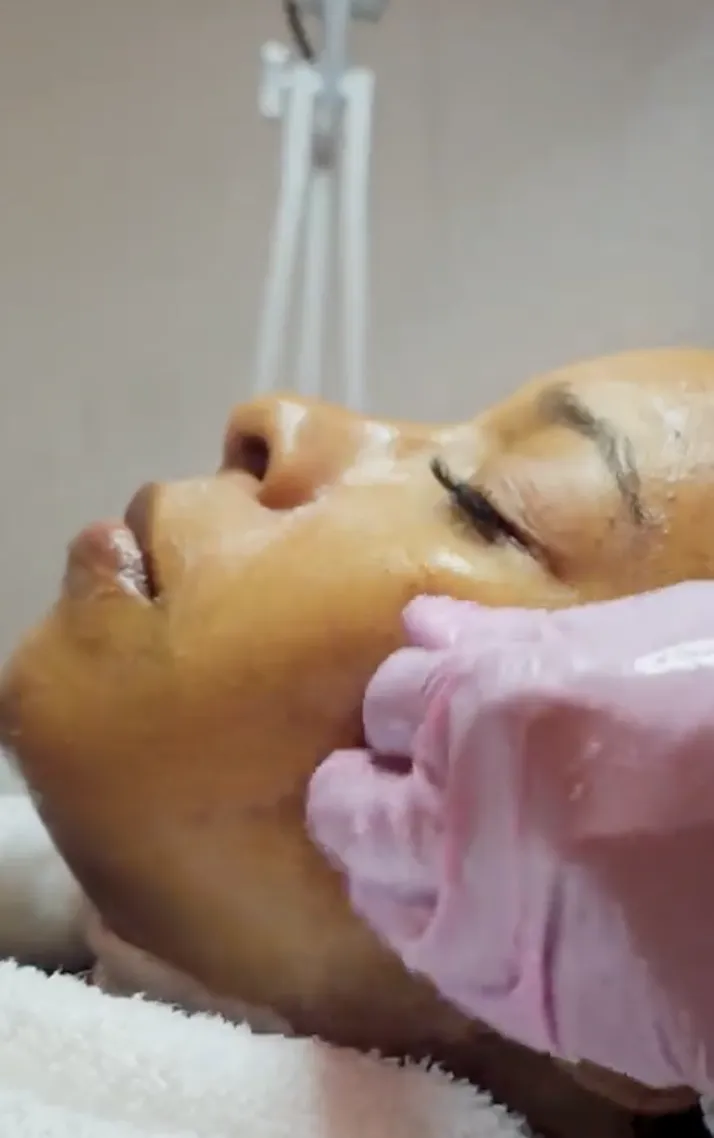 Exfoliating Mask to Purge Impurities – We apply an exfoliating mask designed to help remove buildup, brighten the skin, and create a smoother surface before tightening.
